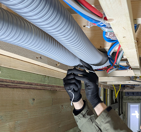 インターネットやテレビなどの通信回線を図面通りに各部屋に通します。
