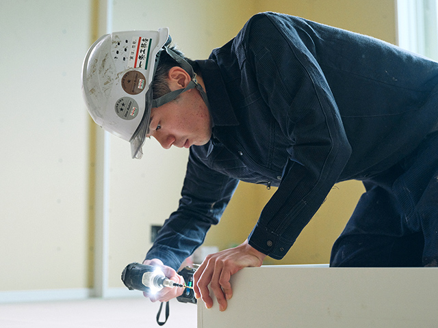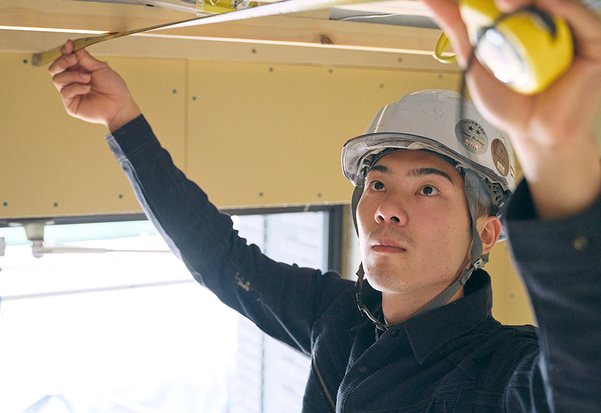 同期は建築科出身が多かったので、入社直後はものすごく差を感じました。石膏ボード貼りでは、他の人が30分で終わる作業に丸1日かかってしまったこともあり、心が折れそうでした。