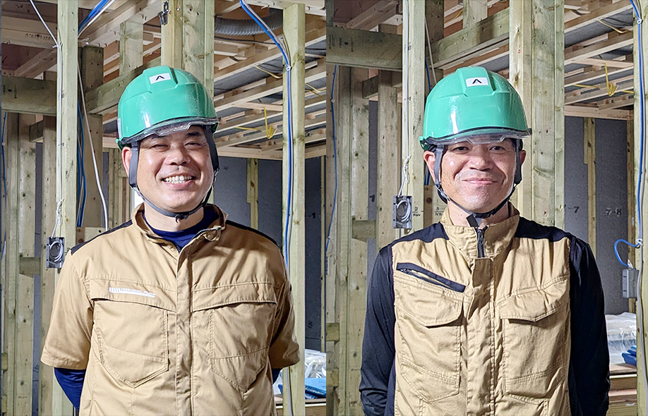 私たちは育成担当として新入社員のメンタルや生活面のケアを行います。最初はやる気にあふれていても、技術が習得できなくて落ち込んだり、人間関係に悩んでしまったりする人も少なくありません。それらの悩みに対し、まずはじっくりと話を聞き、悩みを深掘りして解決に導くのが私たちの任務です。電気工事はお客様の安全で快適な暮らしを守る重要な仕事。壁にぶつかったときは私たちが寄り添い、フォローしますので、一緒に壁を乗り越えてお客様に最高の家をお届けしましょう。