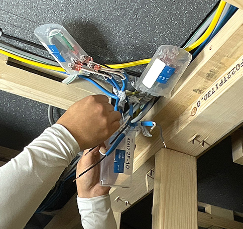 照明やコンセント・スイッチ、分電盤などの電機器具・設備を取り付けます。