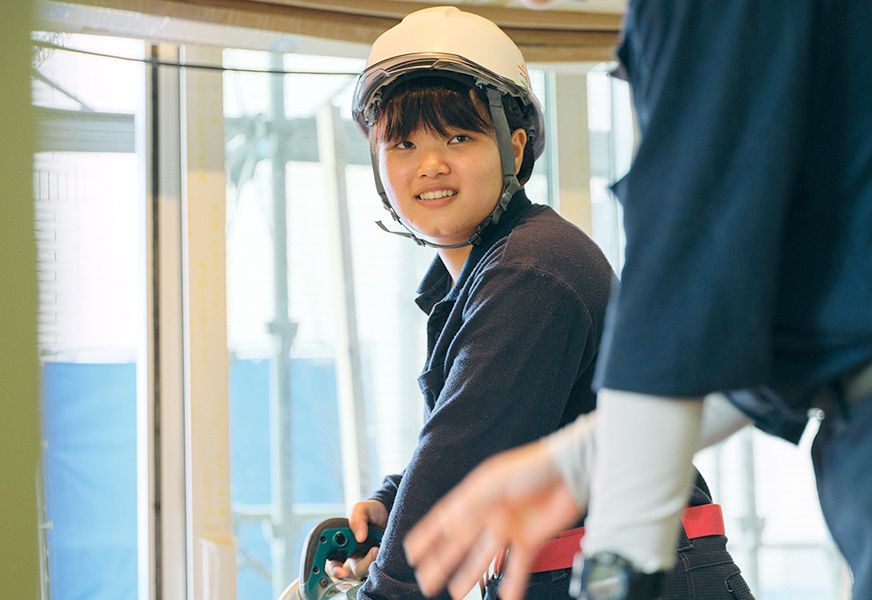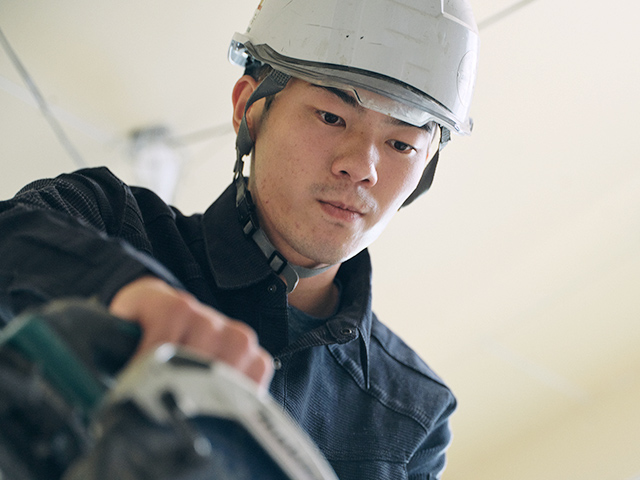同期は建築科出身が多かったので、入社直後はものすごく差を感じました。石膏ボード貼りでは、他の人が30分で終わる作業に丸1日かかってしまったこともあり、心が折れそうでした。