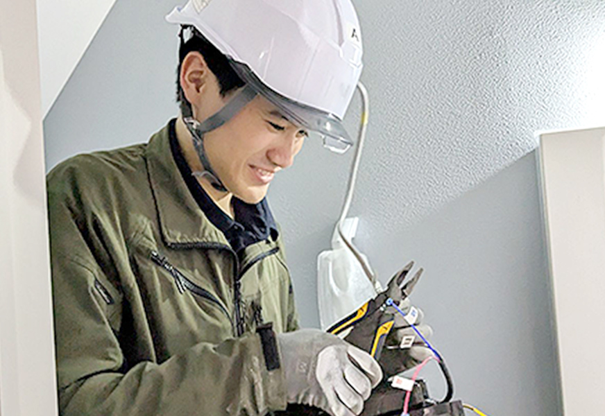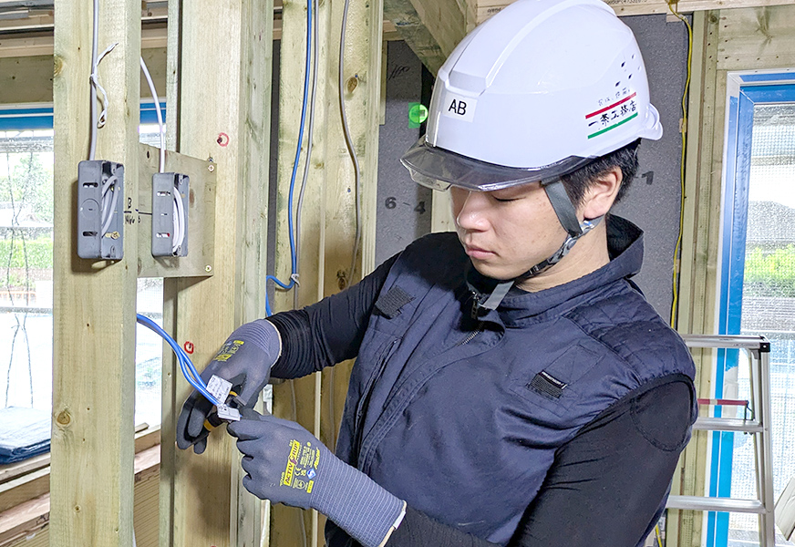 浜松本社を拠点に近隣の新築現場を回り、指導員に教わりながら実践経験を重ねていきました。「ちゃんと一条工務店の電気事業部として仕事をしている」という実感が湧き、さらに意欲が高まりました。