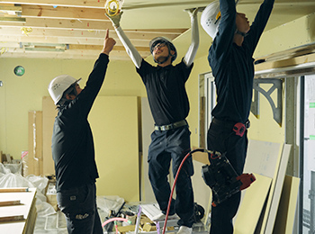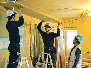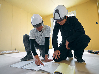 シルバービルダー 一定の技術レベルに達したら、親方のもとを離れて2人1組で施工します。親方のサポートはありますが、2人の力で1棟を完成させるのが目標です。 |