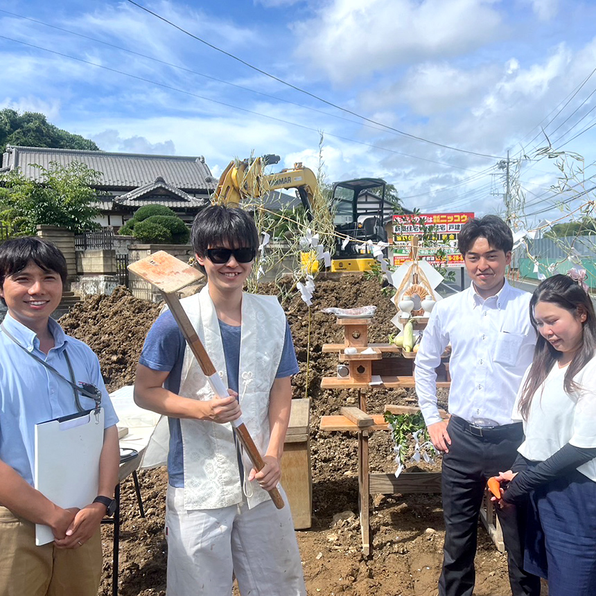自分の家の地鎮祭の様子。建築が始まれば、もちろん大工仕事は自分で! -